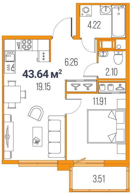 2Евро 43,64 м2