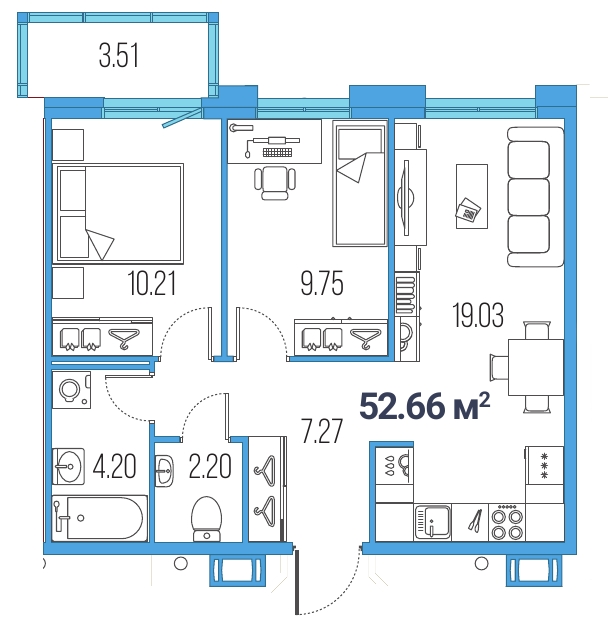 3Евро 52,66 м2