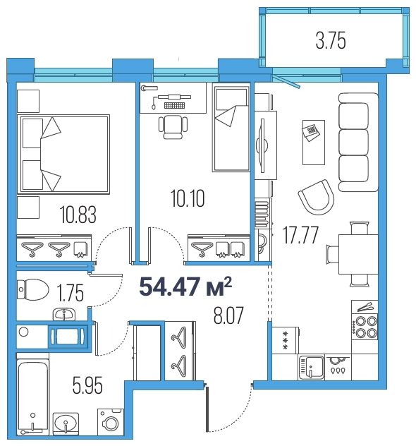 3Евро 54,47 м2