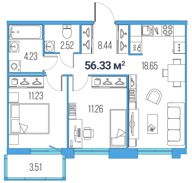 3Евро 56,33 м2