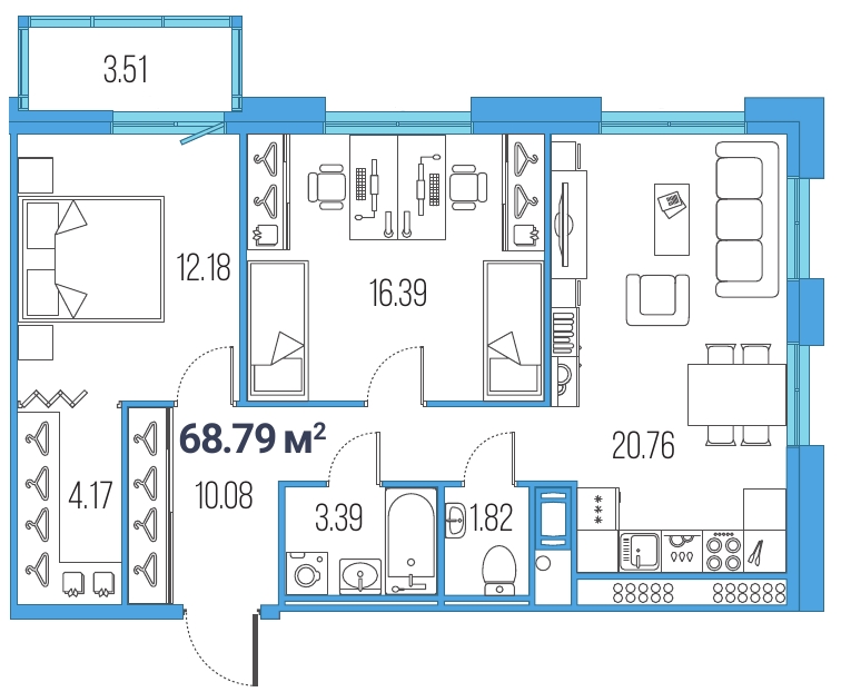 3Евро 68,79 м2
