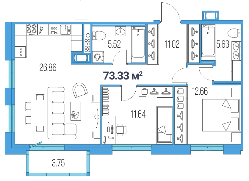 3Евро 63,73 м2