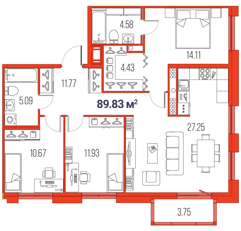 4Евро 89,83 м2