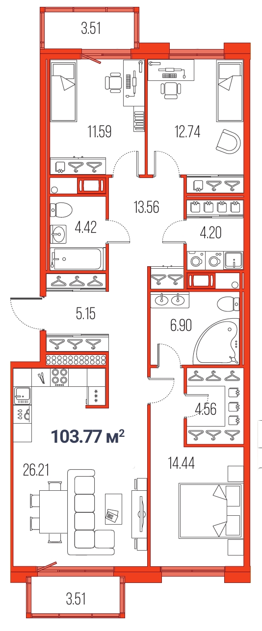 4Евро 103,77 м2