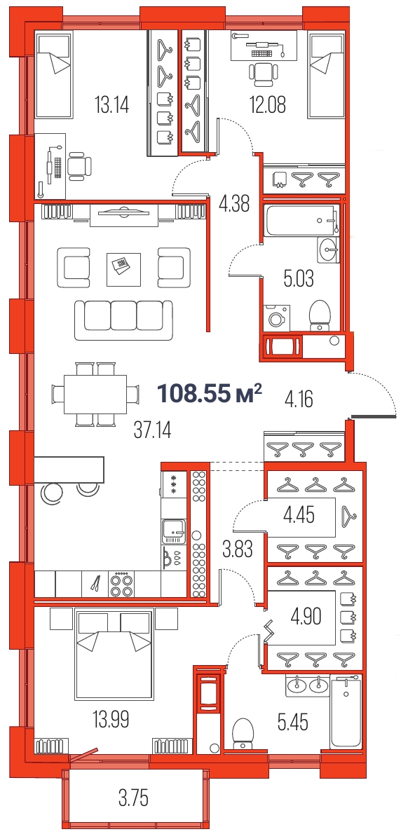 4Евро 108,55 м2